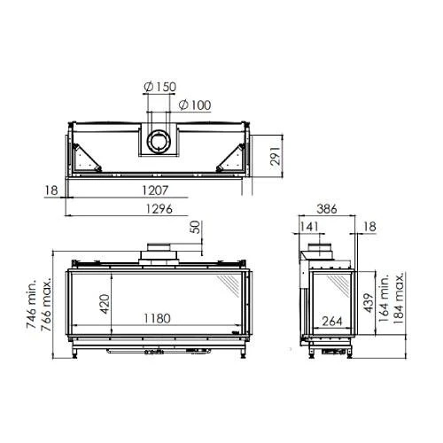 | Maße Sichtscheibe ca (H x B) (mm) | 420 x 1180, 420 x 264 |
