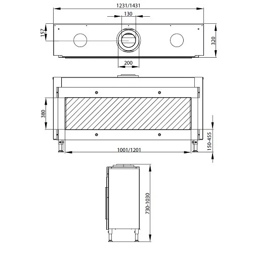 | Maße Grundgerät ca (H x B x T) (mm) | 730 x 1231 x 320, 1030 x 1431 x 320 |