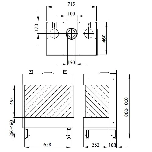 | Sichtscheiben | Panoramakamin: 3 Scheiben, dreiseitige-Kamine |