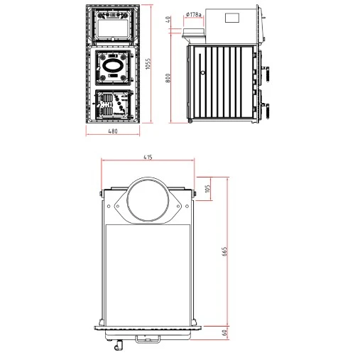 – Frontplatte: 1055 x 480 mm (Höhe x Breite)