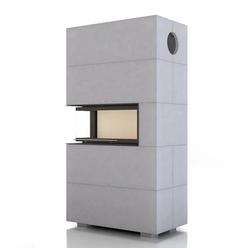 Auch wenn man es ihm auf den ersten Blick nicht ansieht: der Systemkamin BSK 07 zeigt, wie leistungsfähig ein Kaminbausatz von Brunner sein kann. Als Eckkamin konstruiert, verfügt der BSK 07 über einen großzügigen Feuerraum mit eckläufiger Schiebetür. Je nach Wunsch kann die diese links oder rechts angeordnet sein und so für ein harmonisches Gesamtbild der Raumsituation sorgen. Die hier vorgestellte Version des BSK 07 verfügt zudem über ein zusätzliches Sichtbeton-Element.
