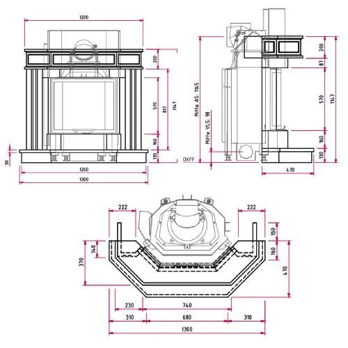 | Bauart | Stil-Kamin, Panorama-Front, Naturstein – Anlage |