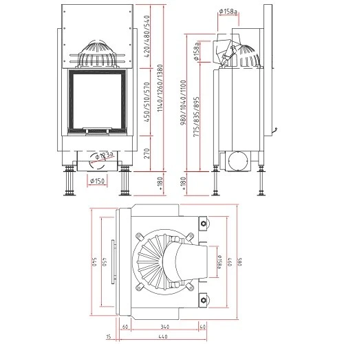 | Grundgerät | Höhe: 1260/1380 mm Tiefe: 440 mm |